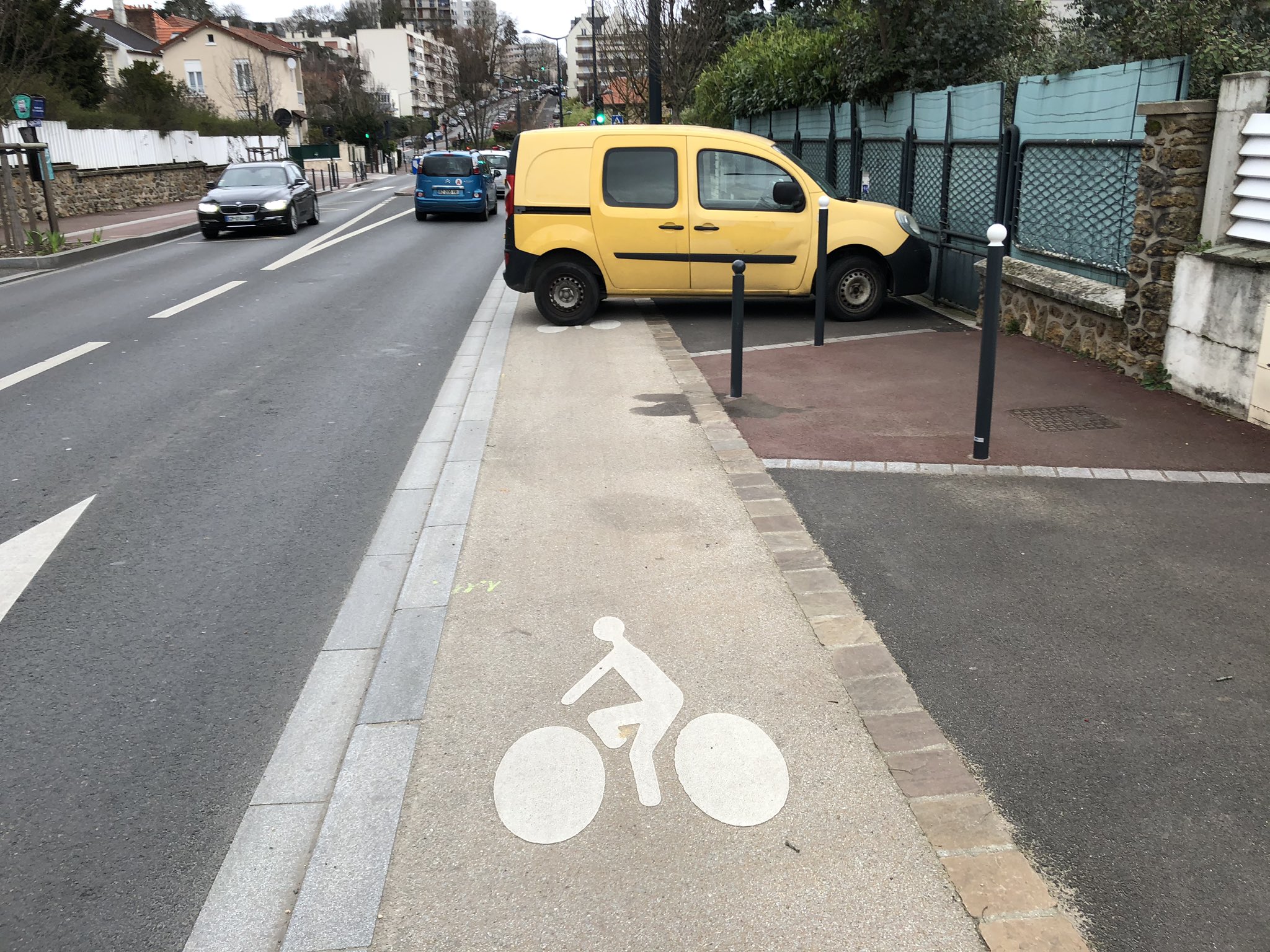 De nombreux commentaires regrettent enfin des « occasions manquées » d’aménagements cyclables lors des rénovations de rues réalisées ces dernières années, par exemple la rue Boucicaut devant la Place de l’Eglise ainsi qu’au niveau de la Mairie, ou la place de La Cavée. Ainsi commente un répondant : « aucune création de bande cyclable hormis peindre sur la chaussée des petits bonshommes à vélo ce qui n’est évidemment pas une solution sûre ». Ce sont en effet des endroits où le volume de circulation motorisée impose un aménagement séparé pour la sécurité des vélos. Le partage de la chaussée ne peut s’envisager que s’il y a à la fois peu de trafic motorisé et une vitesse faible.