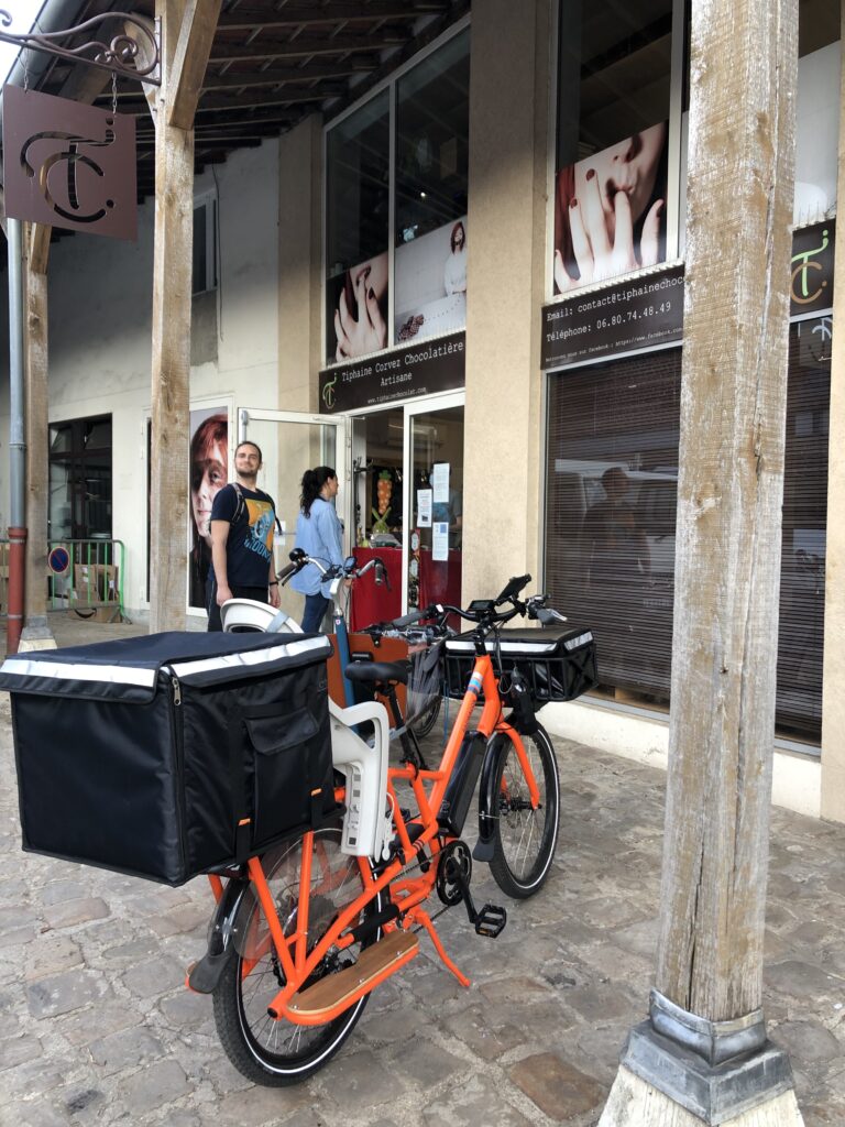 Livraison par Benjamin Carassic de FARàVélo (gauche) pour Jean-Samuel Kubich de Malt & Vin.