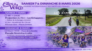 Le collectif Elles à vélo célèbre la Journée des droits des femmes dès le 7 mars et vous propose de vous retrouver pour une projection des Échappées, documentaire suivant l’épopée de femmes à travers un voyage à vélo de plus de 3.000 kilomètres !