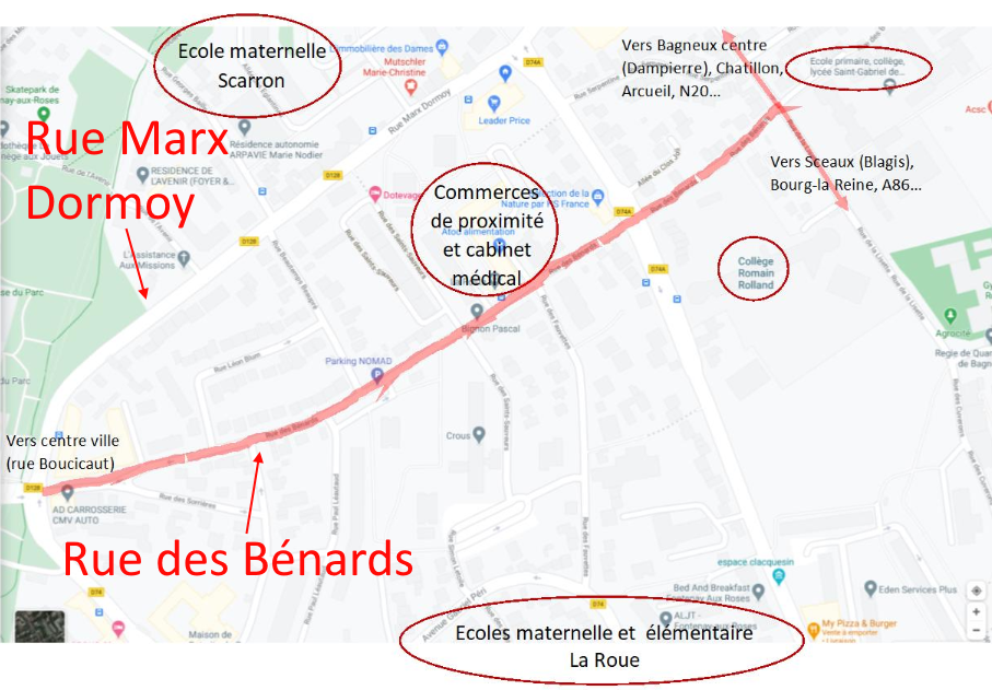 La rue des Bénards devient une « départementale bis » lorsque la rue Marx Dormoy est congestionnée.