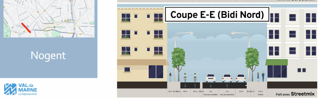 Nous convoquons de nouveau les schémas d’implantation présentés par le conseil département du Val-de-Marne, s’agissant du réseau VIF sur le boulevard de Strasbourg. Aux points les plus contraints en termes de largeur du boulevard de Strasbourg, mais également à des endroits il est bien plus large : il n’est tout simplement pas possible d’avoir des trottoirs dignes de ce nom, une piste cyclable digne de ce nom, des voies compatibles du passage de bus, du maintien de circulation générale et du maintien de stationnement.