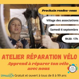 Atelier Votre vélo a besoin d’une petite remise en état ? Une roue à plat ou un dérailleur à régler ? Passez nous voir, nous serons ravis de vous aider.